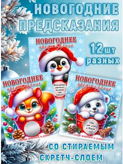 Новогодние открытки с предсказаниями со стираемым слоем 12шт