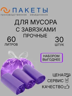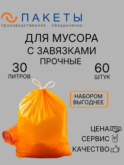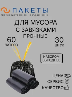 Мешки для мусора 60л 30шт с завязками в рулонах прочные