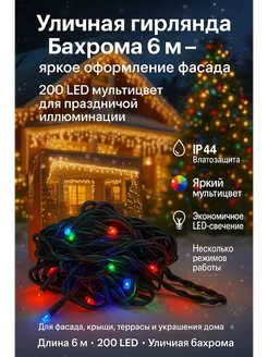 Уличная гирлянда бахрома 6 м 200 LED новогоднее освещение