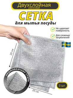 Узелковая сетка для мытья посуды металлическая губка 3 шт