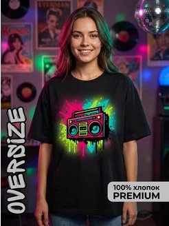 Футболка одежда 90х для вечеринки женская оверсайз хлопок