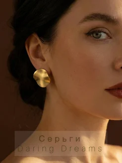 Серьги бижутерия мятая форма матовый блеск золотого цвета