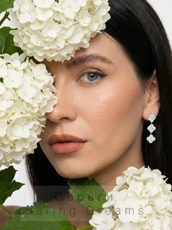 Серьги-подвески серебряного цвета со сверкающими камнями