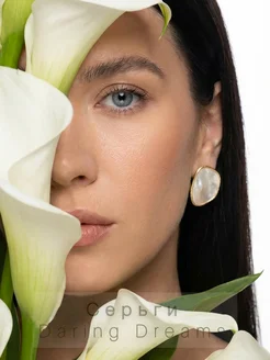 Серьги бижутерия золотого цвета с перламутровым акцентом