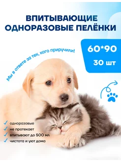 Пеленки одноразовые впитывающие для животных 60х90 30 шт