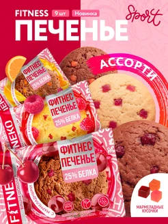 Протеиновое фитнес печенье без сахара ассорти 9 шт