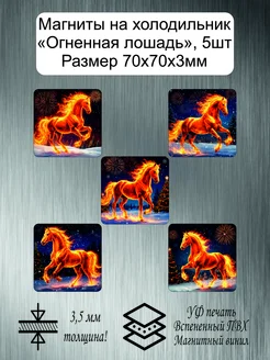 Набор магнитов "Огненная лошадь на фоне елки и салюта", 5шт