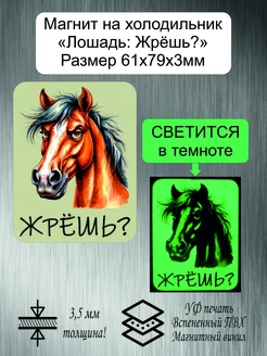 Светящийся в темноте магнит на холодильник "Лошадь Жрешь?"