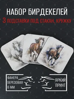 Костер, подставка под стакан "Скачущая лошадь", набор 3шт