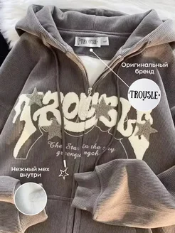 Зип худи оверсайз y2k с принтом с начесом удлиненная