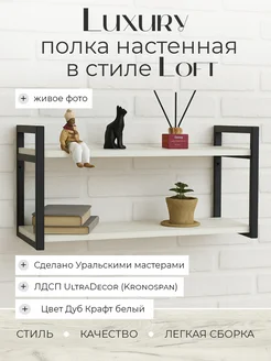 Полка настенная в стиле лофт черная 69х24х34,5 Дуб Крафт бел