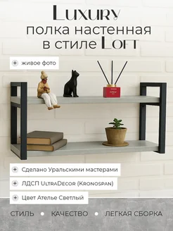 Полка настенная в стиле лофт черная 69х24х34,5 Светлый