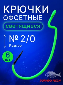 Офсетные крючки для рыбалки, светящиеся №2 0, 6 штук