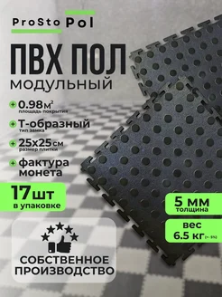 Модульная плитка ПВХ черная монета напольное покрытие 25х25
