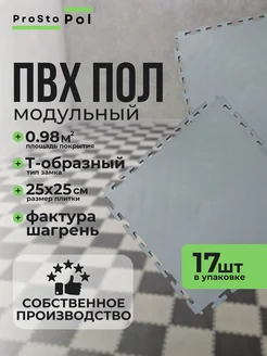Модульная плитка ПВХ серая напольное покрытие 25х25