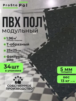 Модульная плитка ПВХ черная рис 25х25 (34 плитки =1,96м2)
