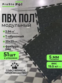 Модульная плитка ПВХ черная 25х25 (51 плитка =2,94 м2)
