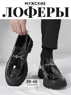 Лоферы мужские на высокой подошве лакированные