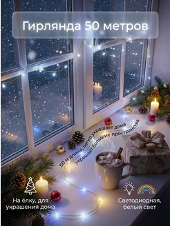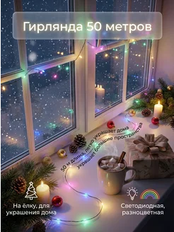 Гирлянда роса 50 метров на ёлку светодиодная, для дома