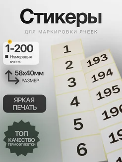 Наклейки для ячеек на складе, для ПВЗ, 1-200 нумерация