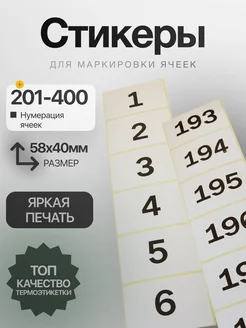 Наклейки для ячеек на складе, для ПВЗ, 201-400 нумерация