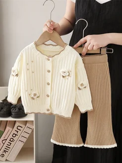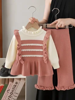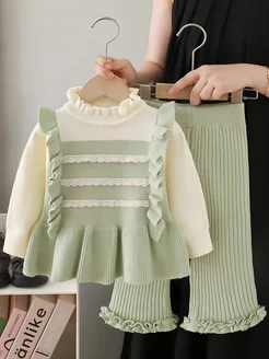 Теплый вязаный трикотажный костюм с брюками двойка
