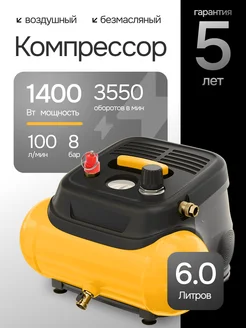 Воздушный компрессор 6 литров безмасляный 220в
