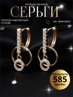 Серьги бижутерия с камнями под золото
