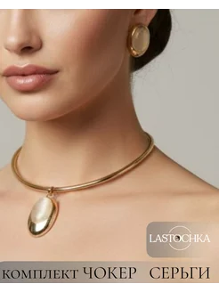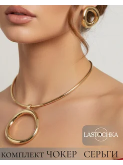 Колье‑чокер металлический с подвеской и серьгами, комплект