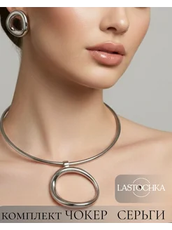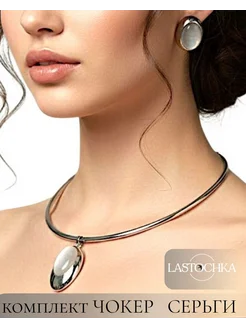 Металлический жёсткий чокер с подвеской и серьгами, комплект