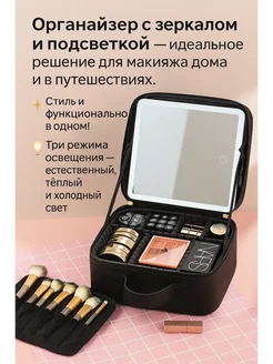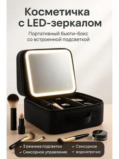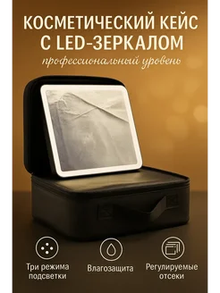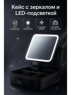 Бьюти кейс, Органайзер косметичка с LED-зеркалом, Большой