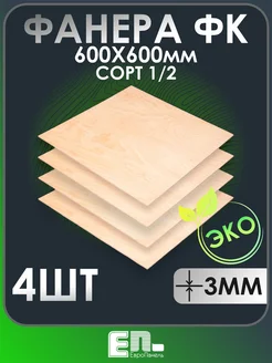 Фанера лист 600*600 3 мм в упаковке 4шт