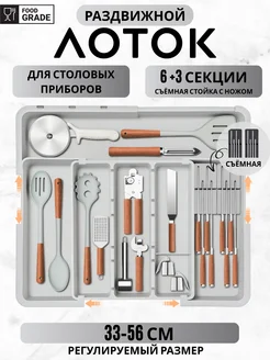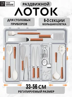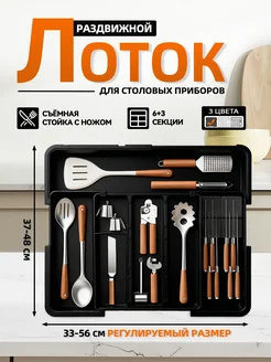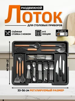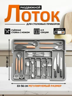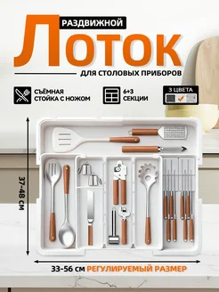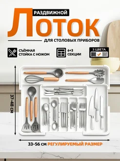 Лоток для столовых приборов в ящик 40, 50, 60 см, раздвижной