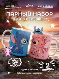Парные кружки Стич и Ангел новогодние подарок 2026