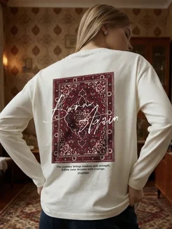 Лонгслив из хлопка однотонный оверсайз с принтом