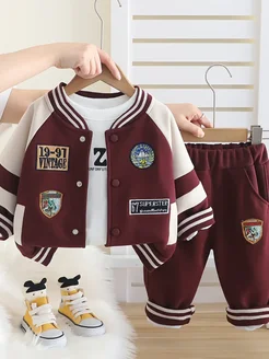 Костюм для малыша нарядный тройка с капюшоном и подвеской