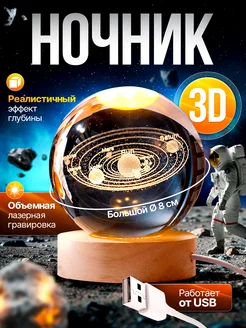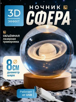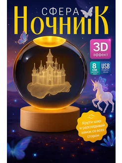 Ночник детский светодиодный стеклянный шар светильник