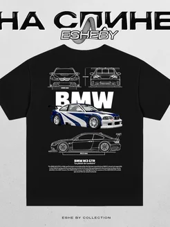 Футболка оверсайз с принтом BMW M3, бмв, с машиной