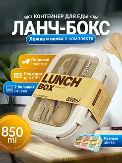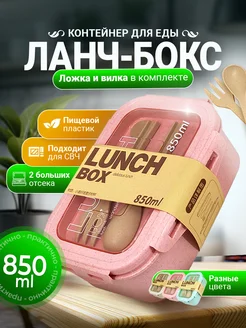 Ланч-бокс с отделениями для еды и столовыми приборами 850 мл