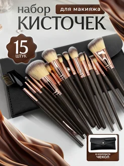 Набор косметических кистей для макияжа 15 шт с чехлом