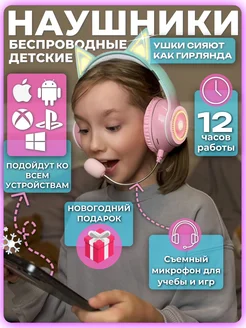 Наушники беспроводные детские для девочки с ушками розовые