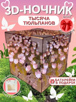 Зеркальный 3D ночник-куб с тюльпанами «Собери сам»