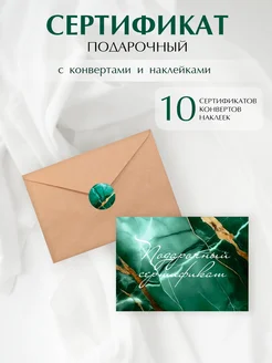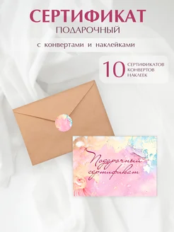 Подарочный сертификат с конвертами и наклейками (10 наборов)