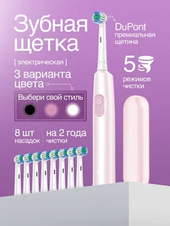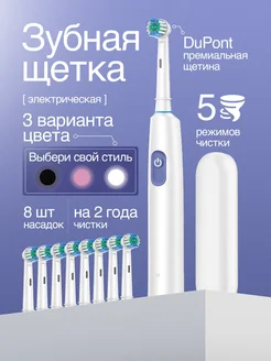 Электрическая зубная щетка для взрослых, 8 насадок, футляр