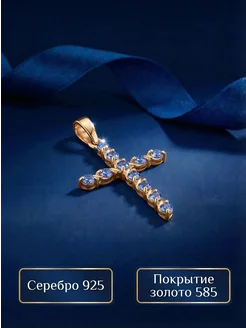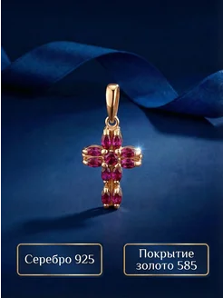 Ювелирная подвеска крестик серебро 925 позолота со Шпинелью