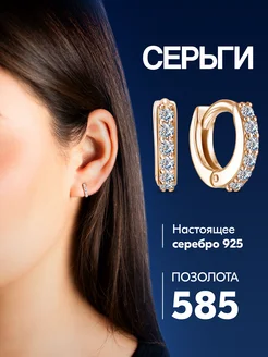 Серьги кольца серебро 925 пробы позолоченные