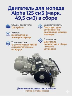 Двигатель для мопеда Alpha 125 см3 (марк. 49,5 см3) в сборе