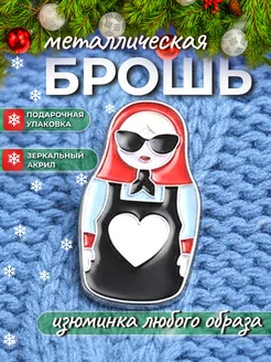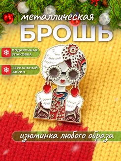Брошь матрешка, Русский стиль Значок на одежду красавица