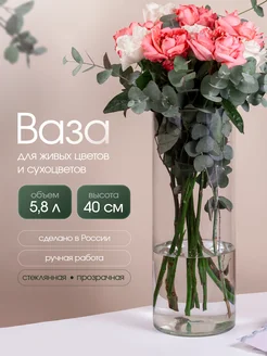 Ваза стеклянная для цветов и сухоцветов прозрачная 40 см