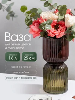 Ваза стеклянная для цветов и сухоцветов декоративная 25 см